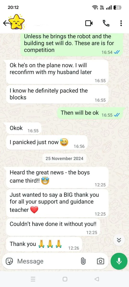 我们已教授超过2,500+名小朋友,掌握各种科技的知识,甚至带一部份的小朋友参加比赛, 并获得大赛冠军。 这也验证了我们的教学系统有效的培养孩子们的兴趣与提升技能。